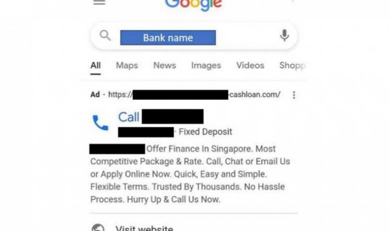SINGAPORE – The police have warned of scam advertisements on Google search where fake bank hotlines appear...
