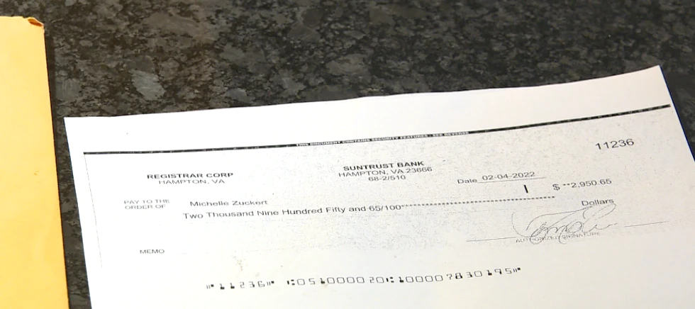 On Feb. 5, Zuckert received her first check of almost $3,000. The check came in a Fed-Ex package with a tracking number. But, when she went to the bank to cash the check, the teller told her that it was fake.