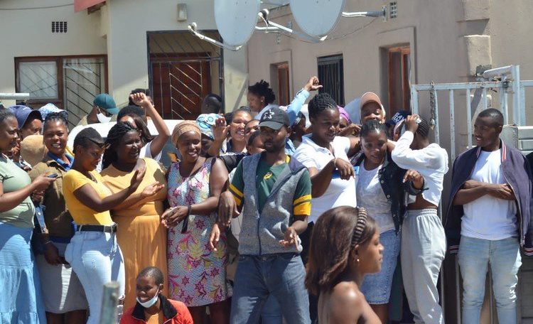 Some of the job seekers, who were scammed out of R800 by a cleaning company, picket outside...