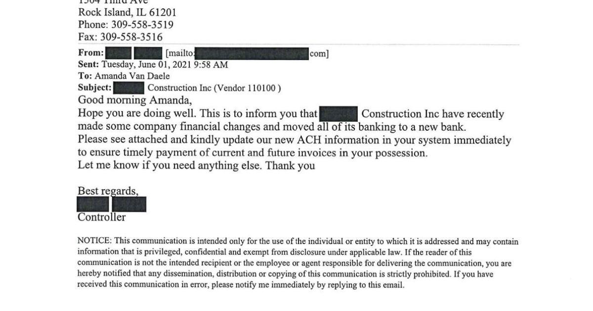 Kurt Davis, information systems director for Rock Island County, said the county was the victim of an attempted wire fraud in August 2020, but county offices stopped it. He said the recent wire fraud was not a failure of any cyber protection.